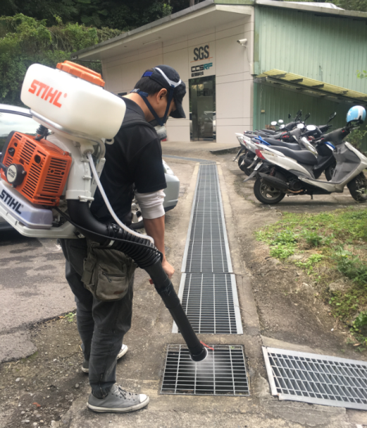 殘效噴灑:用高壓噴霧機將藥劑施用於害蟲經常出沒的地方,在其活動時接觸藥劑而死亡。